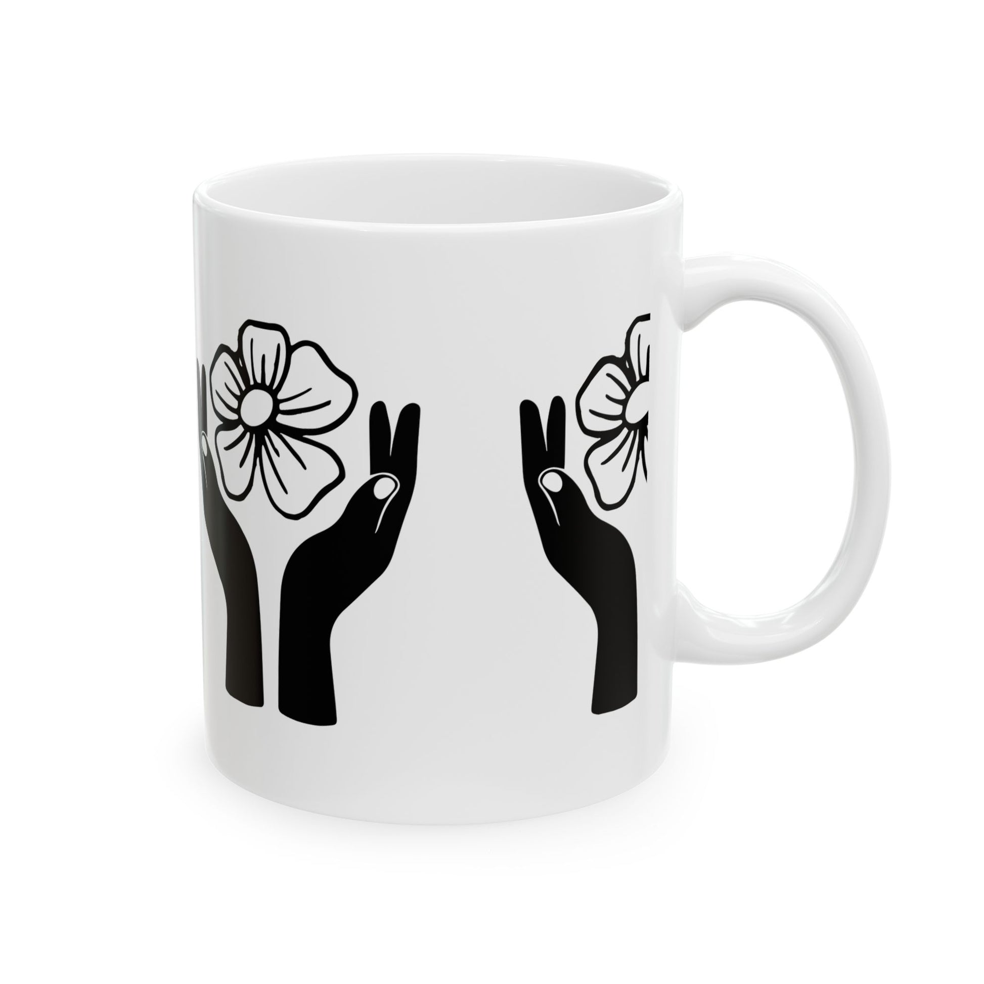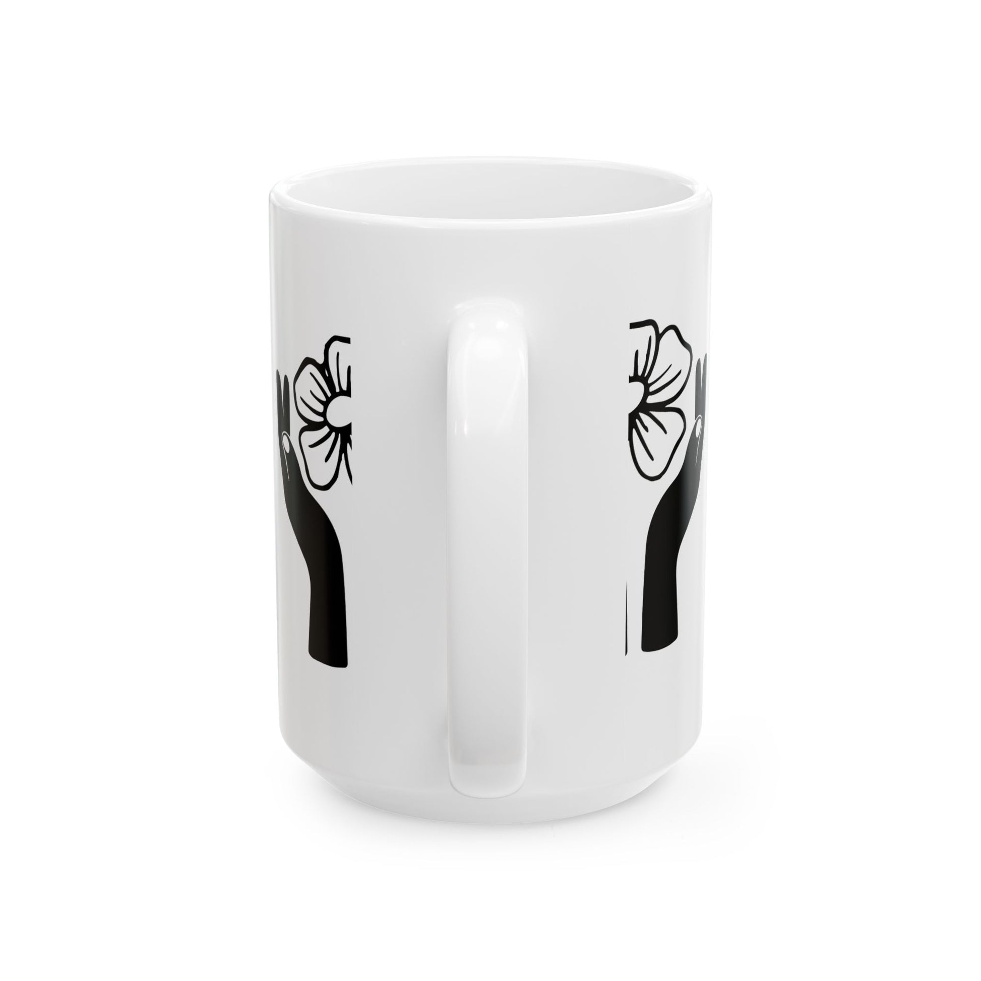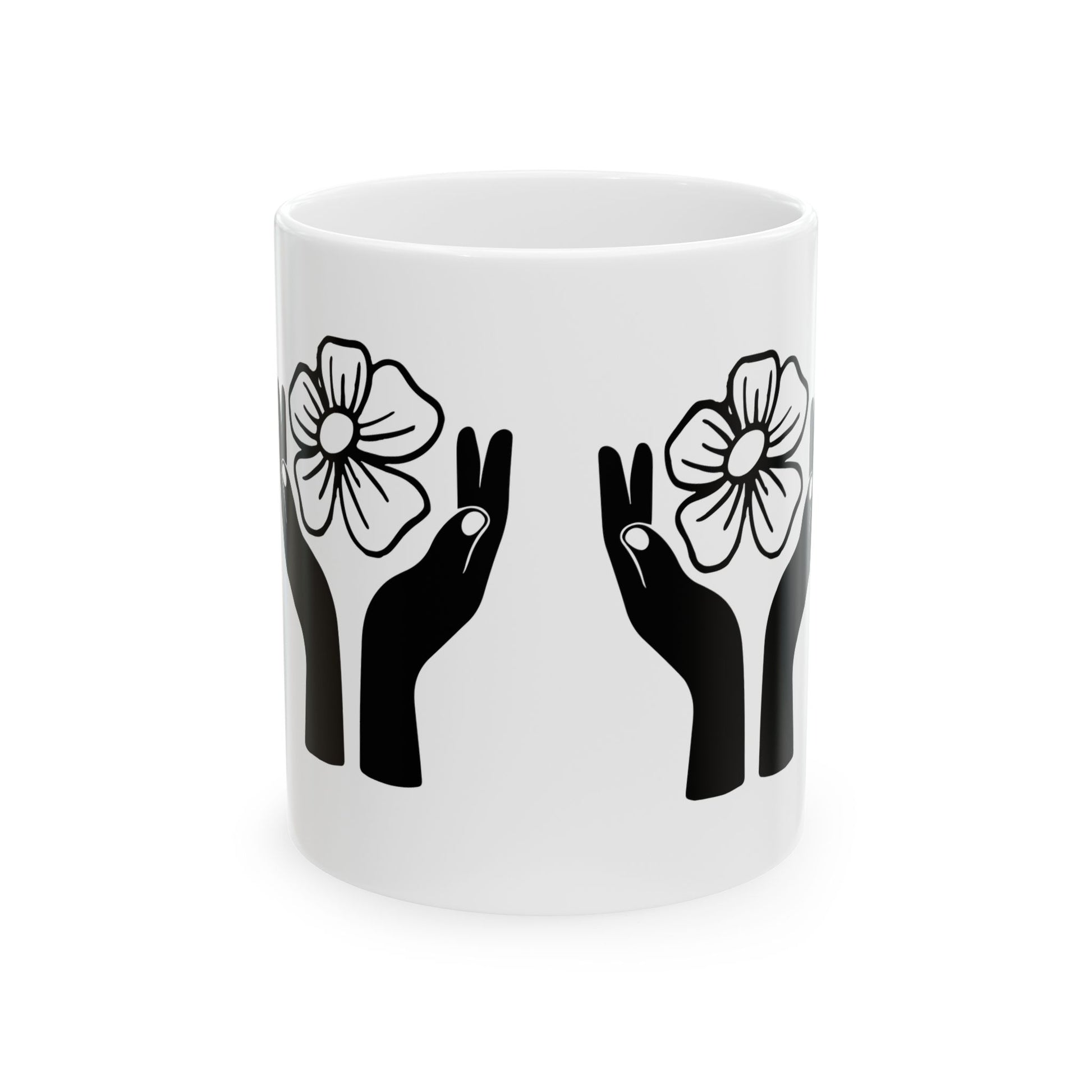 Floral Hands Ceramic Mug – Minimal Black Line Art Coffee Cup for Modern Aesthetic Style (11oz, 15oz)