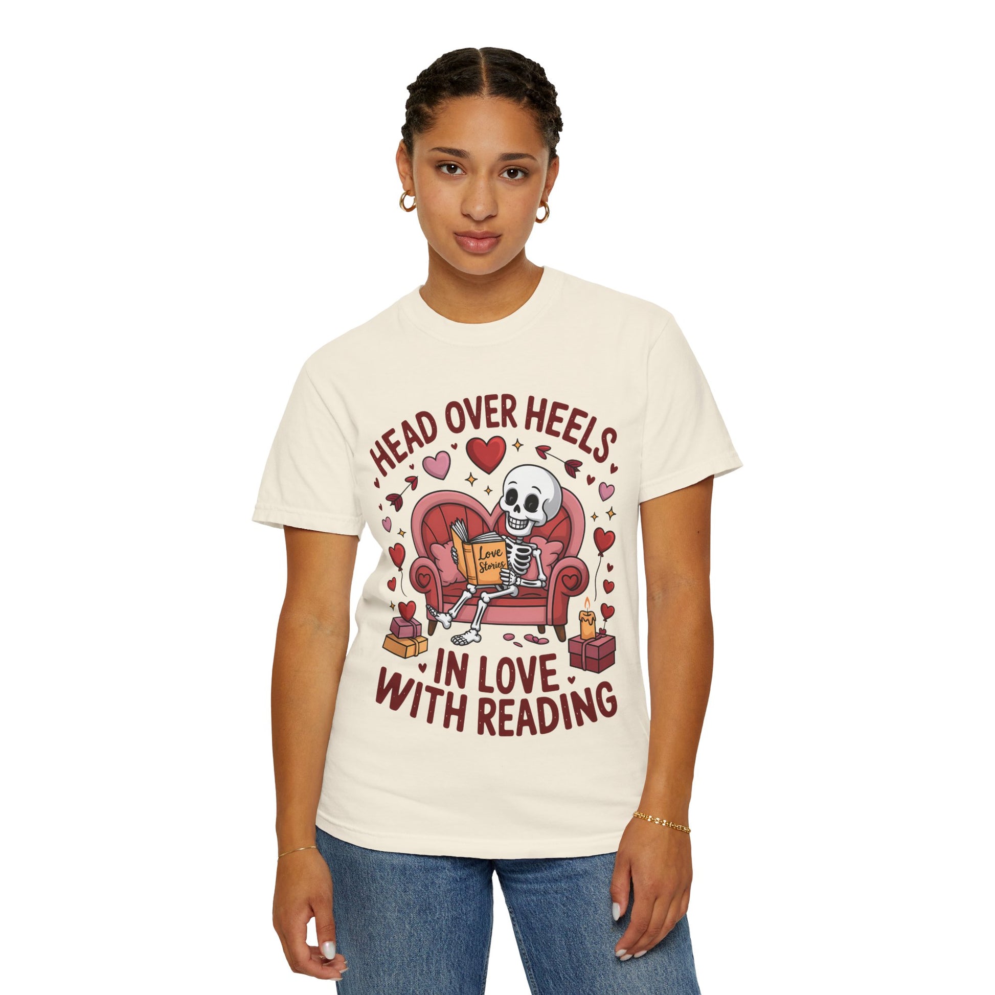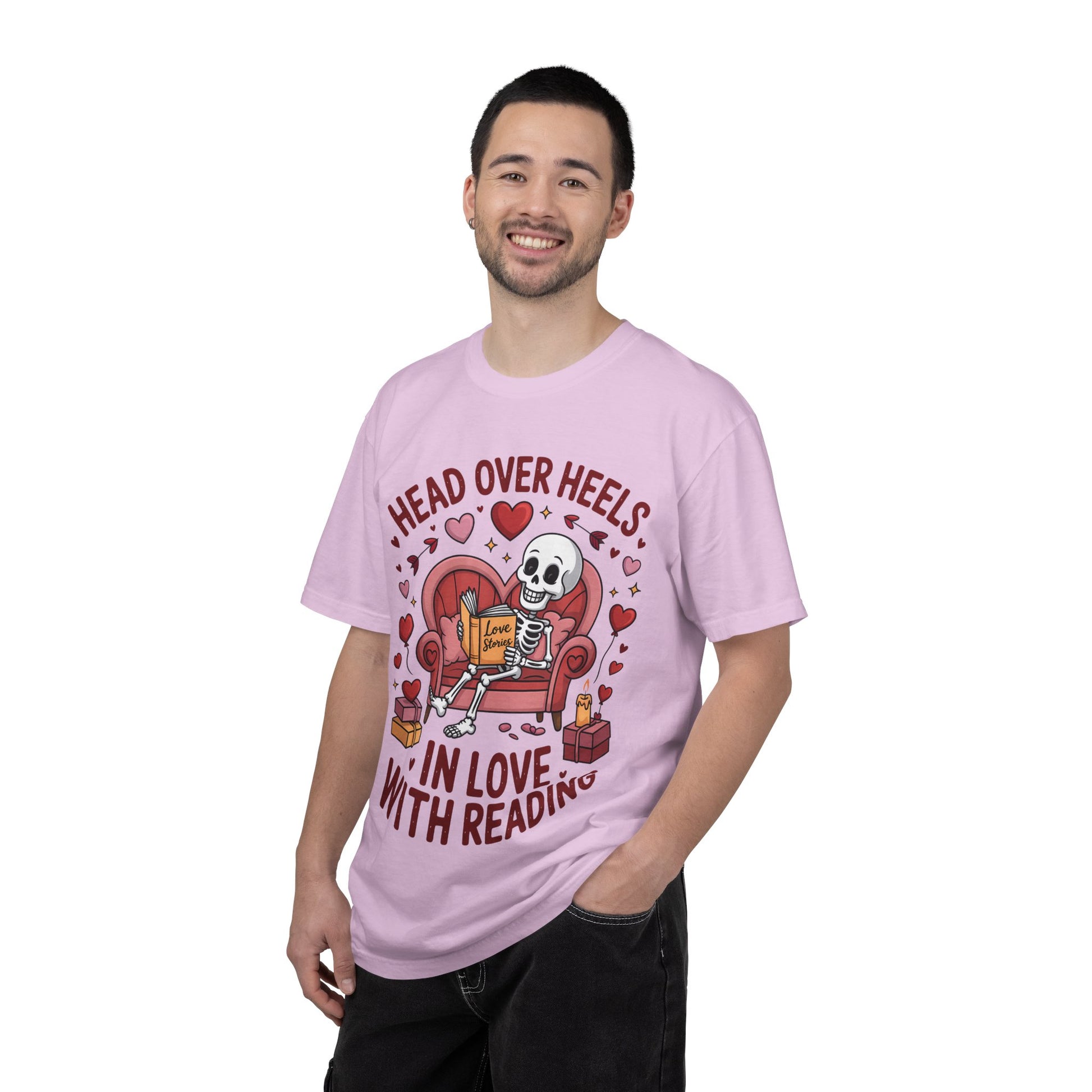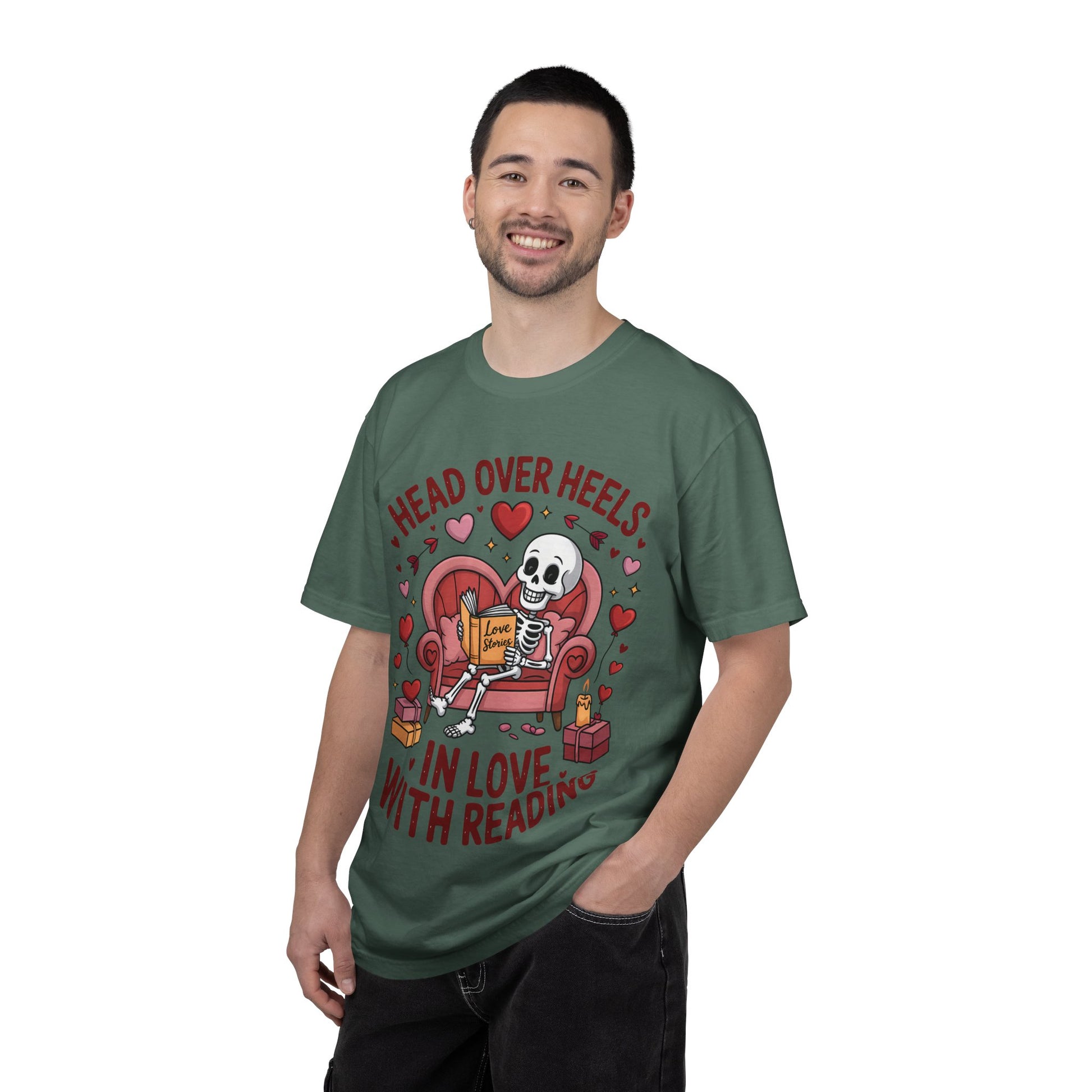 Head Over Heels In Love With Reading Skeleton T-Shirt | Book Lover Gift | Bookworm Shirt | Reading Lover Tee | Librarian Gift | Literary Tee