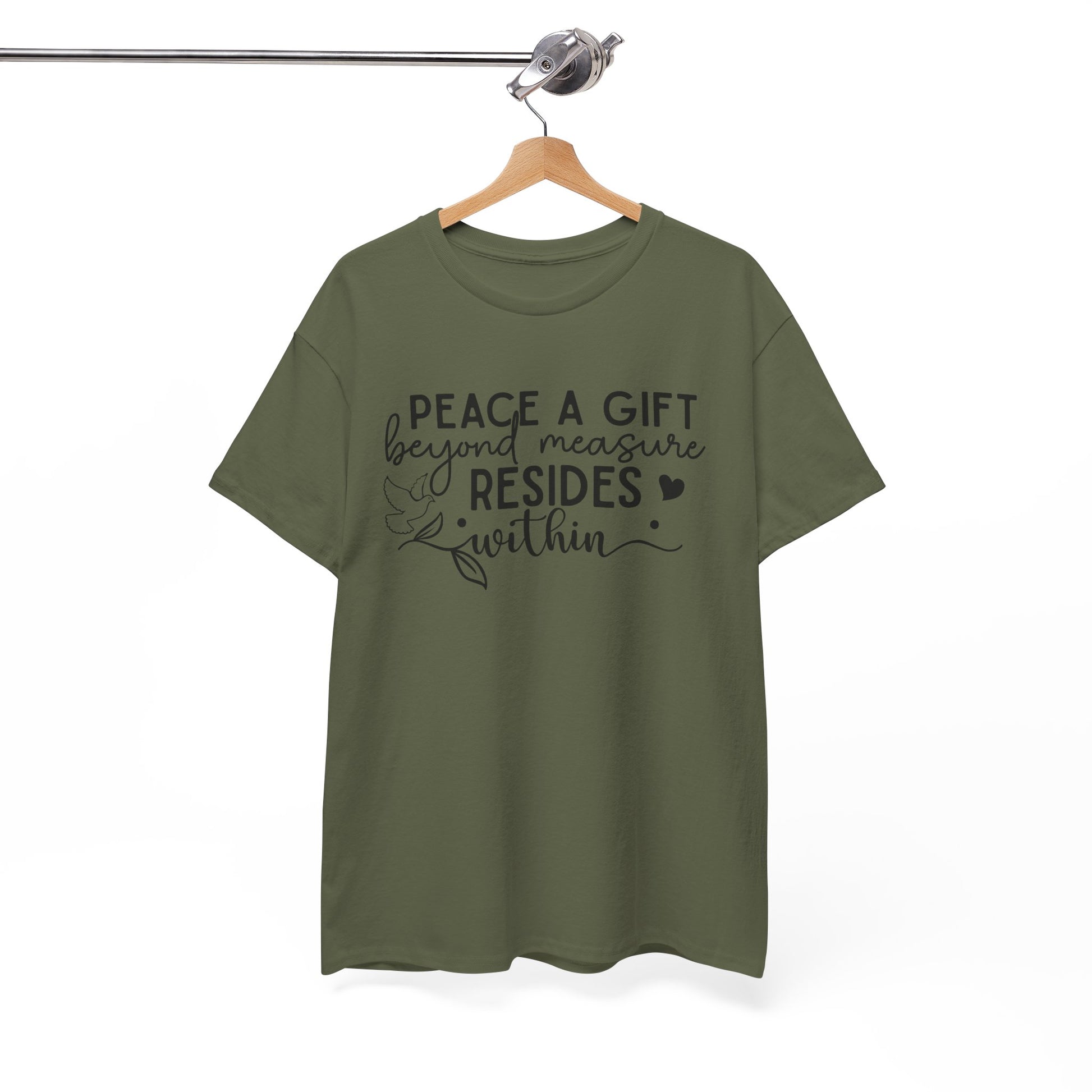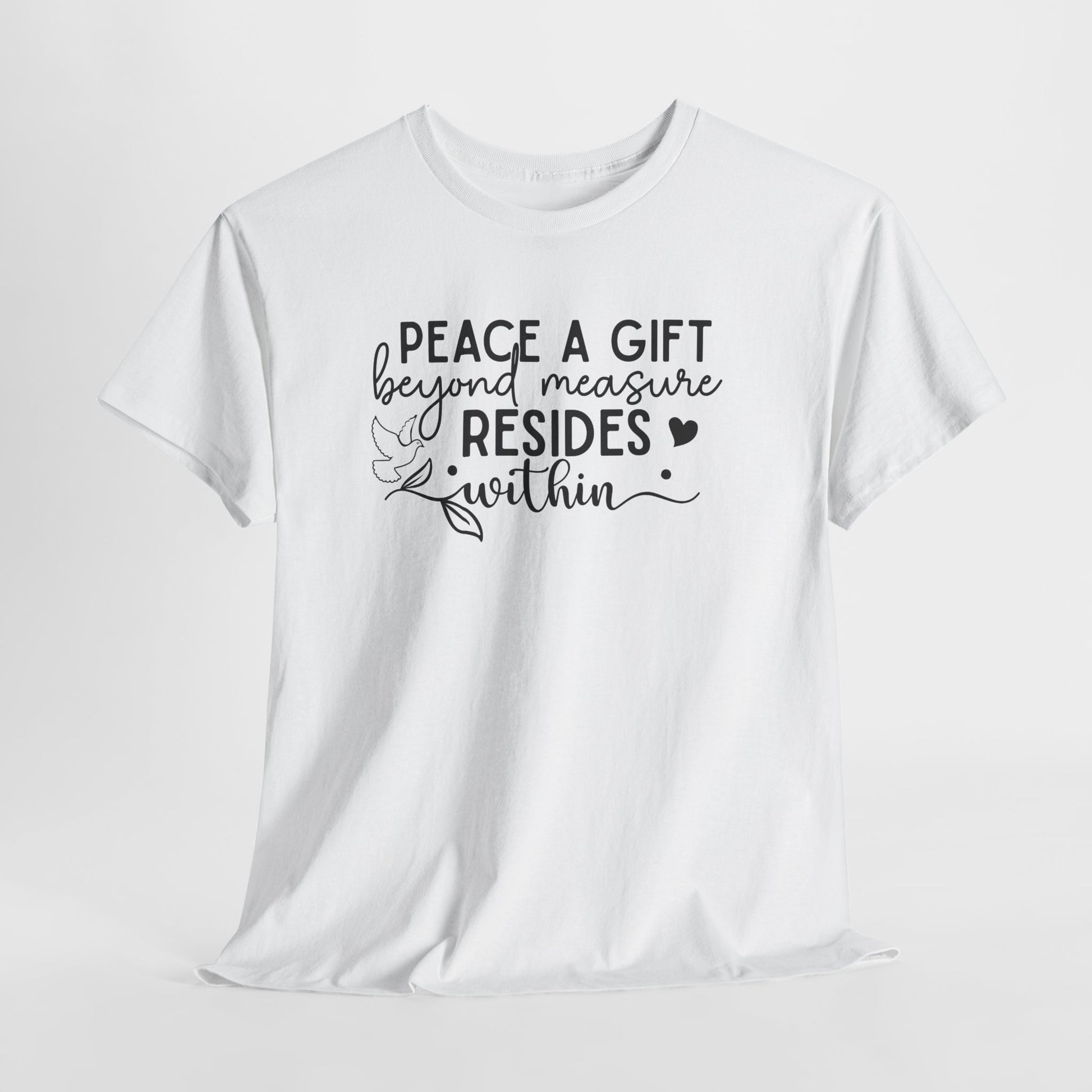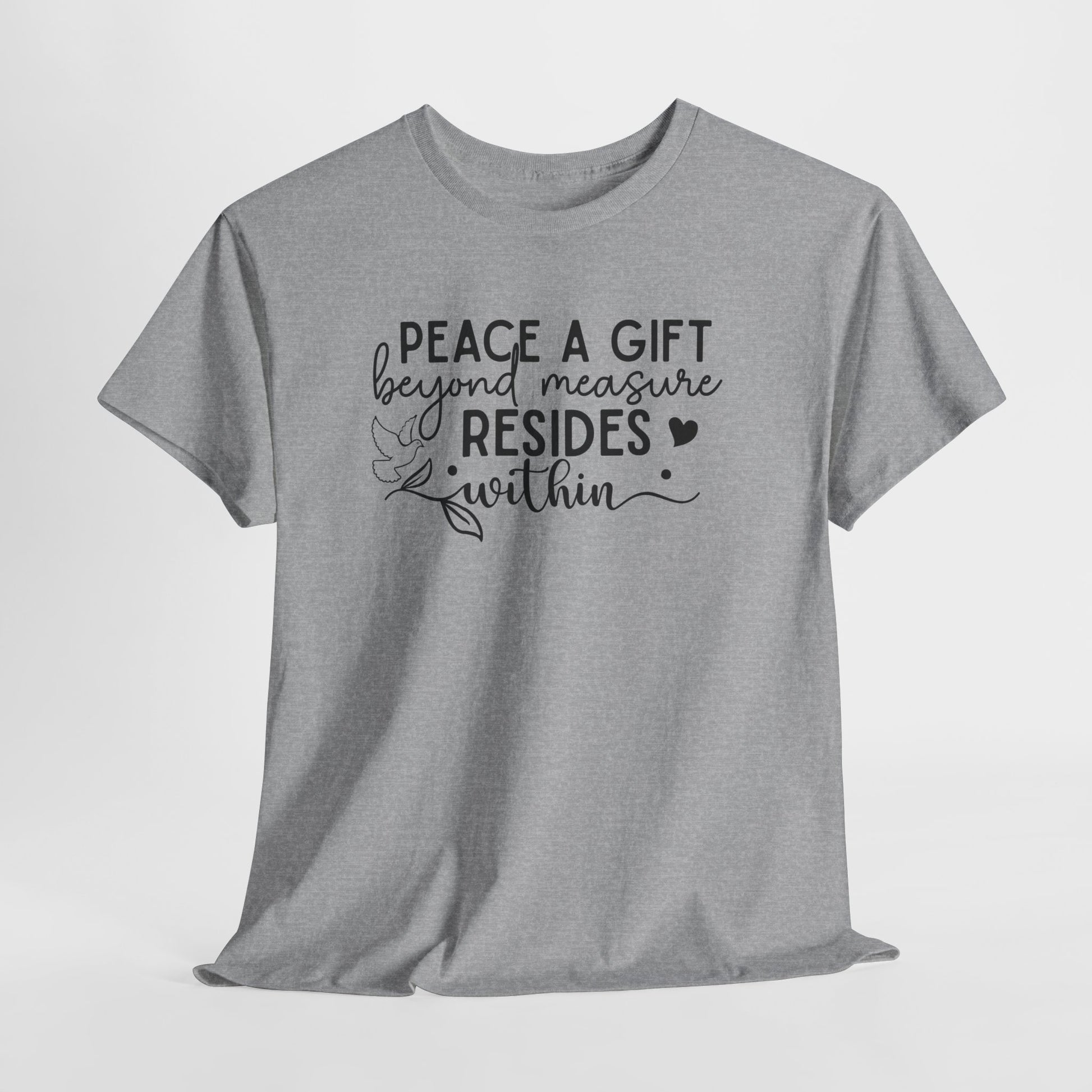Peace A Gift T-Shirt – Inspirational Dove Graphic Tee with “Peace a Gift Beyond Measure Resides Within” Quote